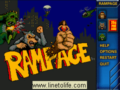 It is now customary to expect a solid translation by iobox of Midway's arcade standbys. We don't question whether iobox can do it right. After landing the Midway library, iobox has done a splendid job, keeping much of the arcade feel and options to create convincing titles that mirror the source material well. Rampage does not buck this trend any, except it adds virtual buttons to cater to the deficiencies of certain devices, most notably the iPAQ H3600 and H3700 devices, which cannot support simultaneous button presses. This is important because there is no stylus play in Rampage. All of the controls are dependent on the PDA buttons.