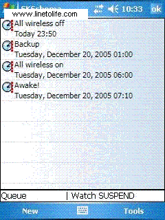 Например, можно запрограммировать следующие действия: "запустить создание резервной копии данных каждый вторник в течение января", "установить GPRS соединение, если запущены почтовый клиент или PocketIE" и т.д.