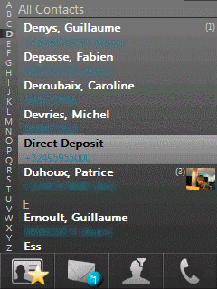 Пользователь может нажать на правой или левой кромке дисплея, чтобы выбрать нужную букву, на которую начинается запись (английская локализация). Список контактов прокручивается, отображая настоящее движение, переход между информацией о контакте и списком также анимирован. Можно установить список избранных, часто используемых, контактов (аналог быстрого набора) для ускорения процесса поиска, что весьма удобно при использовании девайса в автомобиле.