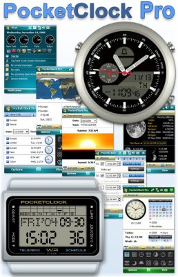 ![]() PocketClock - универсальные часы со встроенным будильником, таймером, секундомером. Работает как в цифровом виде, так и в аналоговом. Текушие дата и время отображаются в обоих режимах. До 20 будильников, 4 одновременных таймера. Встроенный калькулятор времени поможет расчитать период времени до определенного момента или, например, памятной даты. Кроме этого, PocketClock показывает время восхода и заката для любого города мира, лунный календарь. Масса настроек и база данных в 500 городов мира. Возможности PocketClock: - Основной режим с датой, временем и календарем - Цифровые и аналоговые часы - 20 будильников - 4 таймера - Секундомер - Мировое время, карта мира - Время в городах - Интернет время - Восход и закат - Фазы Луны - Калькулятор времени - Имитаторы часов известных брендов - Citizen, Casio, Ana-Digi - Ежечасный сигнал - Скрин-сейвер (только на WM2003) Скачать PocketClock |