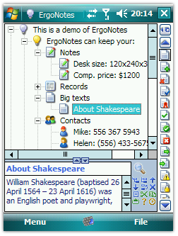 ErgoNotes - простая но мощная программа, помогающая управлять Вашими заметками (или любой другой информацией) для организации их в древовидной структуре.