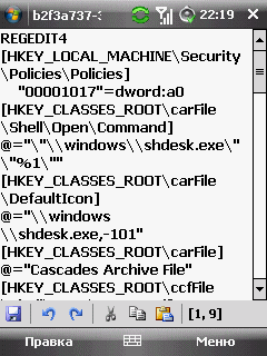 ![]() Возможности: -Просмотр и редактирование текстовых файлов(*.txt,*.log,*.ini,*.ccs,*.reg,*.rgu,* .htm,*.html,*.css,*.xml и т.д.) -Быстрая загрузка больших файлов, производительность выше чем в Microsoft Word Mobile -Автоматическое определение кодировок ANSI, UTF-8 и UTF-16 -Возможность многошаговой "Отмены" и "Восстановления" действий -Возможность набрать номер из текстового файла Системные требования: WM5 - WM6 Разрешение экрана: QVGA, VGA Тип установки: CAB QuickPad 1.3.70.176 RUS |