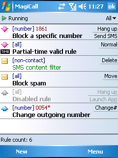 Мощное средство фильтрации звонков и SMS. С помощью MagiCall можно избавиться от нежелательных звонков, автоматически вешать трубку или отправлять SMS, если вы не можете ответить. Предусмотрена возможность создавать правила обработки звонков и SMS.