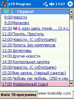 - Загрузка ТВ-программы из сети сразу на КПК