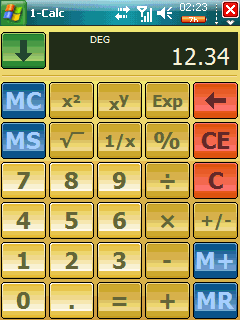 1-Calc - новый революционный калькулятор,обладающий целым рядом особенностей.Таких как,большие удобные кнопки,визуальное и аудио подтверждение нажатия на кнопку.